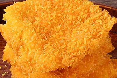 膨化型面包糠生产线采用双螺杆挤压膨化工艺,将面粉或其他粉状谷物原料制成碎渣状、针状或片状面包糠及雪花片;其生产工艺流程包括投料、混合、膨化、冷却、破碎等;相较于传统烘焙方式生产面包糠,膨化工艺具有产量大、连续生产、节能、节约人工等优势;且产品口感品质区别极小,极大程度替代了传统的面包糠生产工艺并丰富了产品品类,不再局限于碎渣状形态外观,原料选择上也更加丰富,各种五谷杂粮粉皆可单一或复配作为原料。“膨化型面包糠生产线”生产流程简洁,从原料到成品全程不间断连续运行,无需人工操作,连续运行时间不低于72小时,且全程无废水、废料排出;设备接触食品部分均采用符合食品安全生产之食品级材质生产加工,整线定制化设计,根据使用方实际需要定制配套方案及车间布局,设计产量从时产一百公斤到上千公斤不等,全心全意满足您的生产需要。